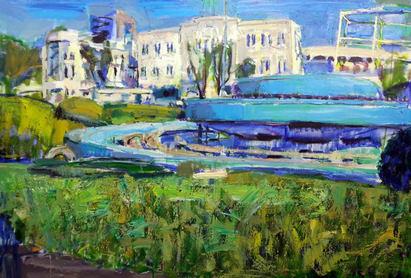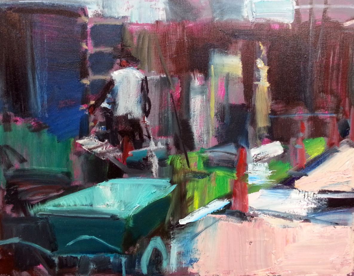 세월호, 망월동, 제주강정, 공사장, 동네의 모습 등 이번 전시는 빠른 속도로 변하는 도시의 일상을 멈추게 하고 다시 역사적 현장에서 사람들의 일상을 초연히 들여다보는 자신의 모습이다. 빠르게 움직인 붓 터치는 긴박한 순간들 그러다가 잠시 멈추어 숨 고르는 작가의 내면은 캔버스위에서 기록으로 남겨진다.