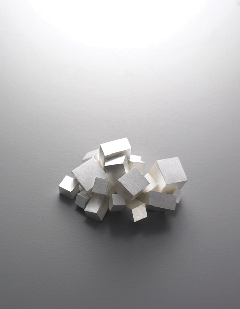 기하학적인 형태의 분석과 삼차원적 재구성의 작업에 많은 관심을 보여 왔다. 특히 상징적 아이콘으로써 기본 기하형태 조합과 반복된 형태의 점층적 이미지를 이용한 장신구 작업을 통해 꾸준한 연구 활동을 이어오던 중, 다수의 기하형태가 서로 상응하여 생성된 소리라는 새로운 청각으로 전달하는 또 다른 작품은 감동 그 자체이다.