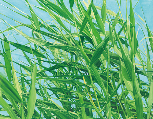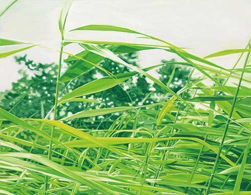 언어적으로든, 컬러코드로든 초록색은 교감을 떠올릴 수밖에 없는 본성을 가진 색표현어이다. 최정희 작가가 풀을 몇 해 동안 다루고 있는 이유는 이 때문일 것이다. 초록색으로 표현하는 것은 당연히 초록일 수밖에, 풀잎들의 겹침일 수밖에. 하지만 작가에게 회화적 대상이 된 풀은 산자락이나 강둑이나 논두렁에 있는 실제의 형상들, 이름없는 풀들을 옮겨놓은 것이 결코 아니다. 그의 풀은 모방론적 대상이 아니라 오히려 철학적인 표현의 회화적 대상이다.