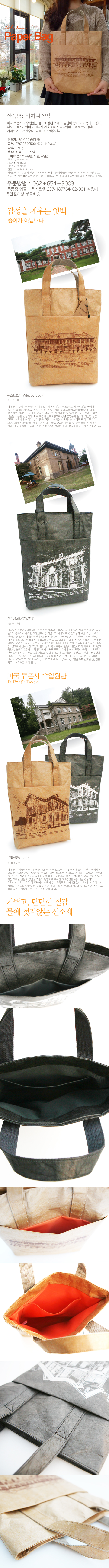 폴리에틸렌 소재의 원단에 종이와 가죽의 느낌이 나도록 후처리하여 근대역사 건축물 윈스브로우홀(1927), 오웬, 우일선을 드로잉하여 프린팅하였습니다. 가벼우며 구겨질수록 더욱 멋스럽습니다.