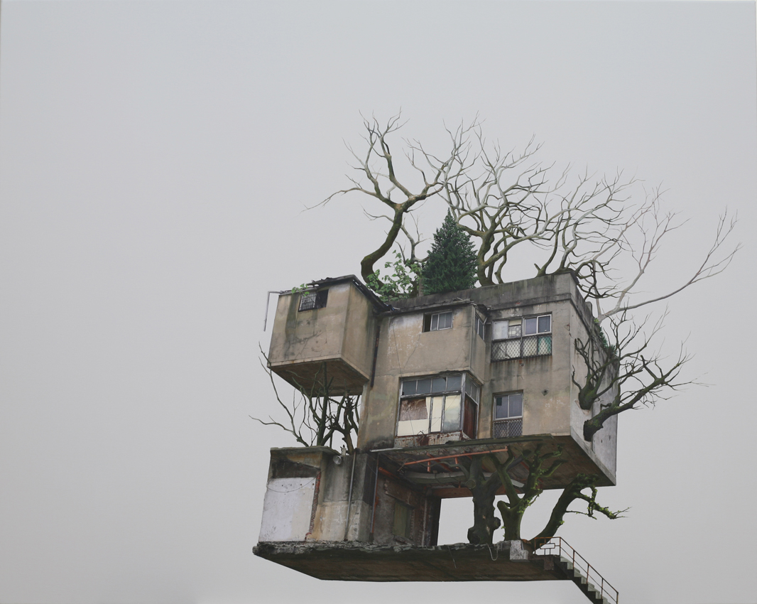 최근의 작업 <응집, 그리고 이완> 연작에서는 자연과 집(혹은 건물)을 조합한 작업을
